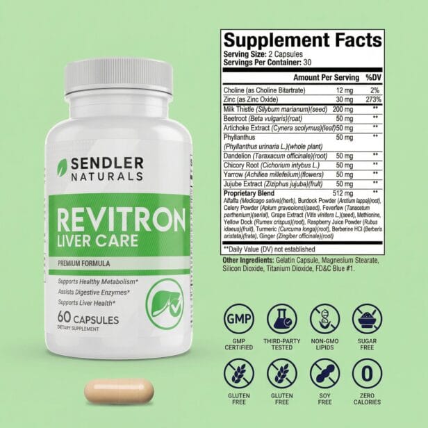 Revitron Liver Care combines traditional herbal extracts with essential nutrients to promote overall liver wellness and metabolic function. With ingredients like Milk Thistle, Dandelion Root, and Artichoke Extract, this formula supports your body’s natural detox processes and digestive health—without harsh additives or fillers.*