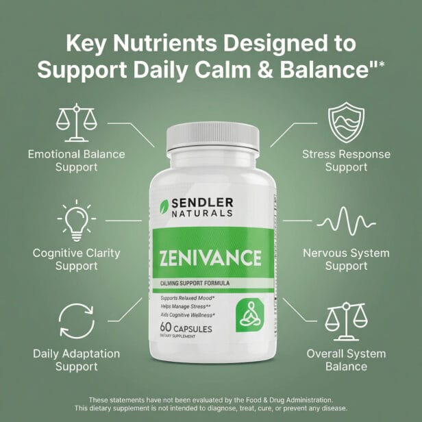 Zenivance is a premium calming support formula designed to promote a relaxed mood, help manage everyday stress, and support cognitive wellness. Featuring a carefully selected blend of adaptogens, vitamins, and herbal extracts like Ashwagandha, Rhodiola, GABA, and L-Theanine, it’s crafted for those seeking balance in a busy world. Made in the USA with high-quality ingredients and vegan-friendly capsules, Zenivance fits seamlessly into your daily wellness routine.